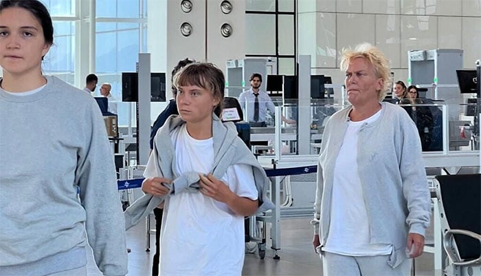 اسرائیل نے صمود فلوٹیلا کے 171 ارکان کو ڈی پورٹ کردیا، ڈی پورٹ کیے گئے افراد میں سوئیڈن سے تعلق رکھنے والی ماحولیاتی کارکن گریٹا تھنبرگ بھی شامل ہیں۔اسرائیلی وزارتِ خارجہ نے اعلان کیا ہے کہ غزہ کے لیے روانہ امدادی بحری بیڑے صمود فلوٹیلا کو روکتے وقت گرفتار کیے گئے 171 مزید ارکان کو ڈی پورٹ کردیا گیا