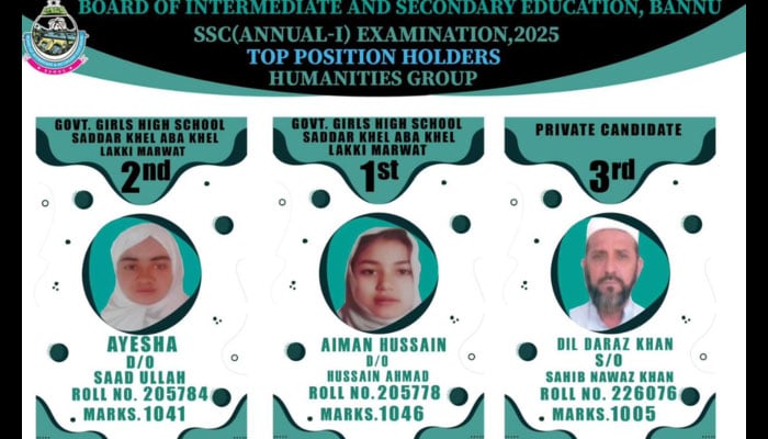 خیبرپختونخوا کے ضلع بنوں میں میٹرک کے امتحانات کے نتائج کا اعلان ہوگیا۔بنوں کے سینٹرل جیل کے قیدی دلدراز خان نے میٹرک کے امتحان میں تیسری پوزیشن حاصل کرلی۔تعلیمی بورڈ بنوں سے دلدراز خان نے پرائیوٹ امیدوار کی حیثیت سے حصہ لیا تھا۔انہوں نے 1200میں سے 1005 نمبر حاصل کر کے تیسری پوزیشن حاصل کی ہے۔