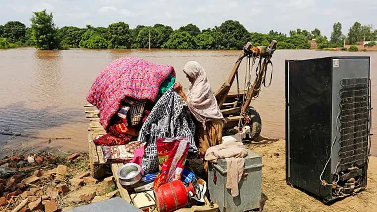 بھارت کی جانب سے دریاؤں میں چھوڑے گئے اضافی پانی نے پنجاب کے جنوبی علاقوں میں تباہی مچا دی، دریائے ستلج، راوی اور چناب میں شدید طغیانی کے باعث کئی بند ٹوٹ گئے اور مزید درجنوں دیہات زیر آب آ گئے، منڈی بہاؤالدین میں 2 نوجوان ڈوب گئے۔شجاع آباد میں شیر شاہ کے قریب بستی گاگرہ کا حفاظتی بند ٹوٹ گیا، 200 فٹ چوڑا شگاف پڑنے سے پانی قریبی بستیوں میں داخل ہوگیا، ملتان کی بستی گرے والا میں پانی کی سطح میں مسلسل اضافہ ہونے لگا، لاکھوں ایکڑ رقبے پر کھڑی فصلیں زیر آب آگئیں۔جھنگ کے علاقے شور کوٹ کے مقام پر دریائے چناب میں درمیانے درجے کا سیلاب آگیا، سلطان باہو پل سے 2 لاکھ 60 ہزار کیوسک کا ریلا گزرا، در کھانہ کے مقام پر ریلوے پل سے سیلابی پانی ٹکرانے سے شور کوٹ خانیوال ریلوے سیکشن دوسرے روز بھی بند رہا۔پنڈی بھٹیاں میں ہائی فلڈ الرٹ جاری کر دیا گیا، 5 لاکھ 57 ہزار کا ریلا گزر رہا ہے، احمد پور سیال میں موضع سمند وانہ بند میں شگاف پڑ گیا، کئی علاقے زیر آب آگئے، فصلوں کو نقصان پہنچا، لیاقت پور میں دریائے چناب اور دریائے سندھ کے سیلابی ریلوں سے تباہی مچ گئی۔موضع نور والا کی متعدد بستیاں سیلابی پانی کی نذر ہوگئیں، بڑے رقبے پر فصلیں بھی زیرآب آگئیں، چنیوٹ میں ریسکیو ٹیموں کا ٹھٹھہ ہشمت اور موضع ڈوم میں امدادی آپریشن جاری رہا، 25 افراد کو محفوظ مقام پر منتقل کردیا گیا، اب تک 1312 افراد کو ریسکیو کیا گیا۔خانیوال میں بھی سیلاب سے تباہی مچ گئی، درجنوں دیہات میں پانی داخل ہوگیا، اوچ شریف دریائے ستلج میں طغیانی کے باعث پانی مزید 20 رہائشی بستیوں میں داخل ہوگیا، ہزاروں ایکڑ رقبے پر کھڑی فصلیں ڈوب گئیں۔ریسکیو ٹیمیں اور ضلعی انتظامیہ متاثرہ علاقوں میں امدادی سرگرمیوں میں مصروف ہیں تاہم پانی کی شدت کے باعث کئی مقامات تک پہنچنا مشکل ہو رہا ہے۔دریائے چناب میں تریموں کے مقام پر اونچے درجے کا سیلاب ہے، تریموں بیراج پر پانی کی آمد 3لاکھ 31 ہزار کیوسک ہے۔عارف والا کے مقام دریائے ستلج میں سیلابی صورتحال خطرناک ہونے کا خدشہ ہے، چک یاسین کے میں کئی کئی فٹ سیلابی پانی جمع ہو گیا، چک یاسین کے کا سرکاری سکول سیلابی ریلے کی لپیٹ آ گیا، مزید کئی دیہات سیلابی ریلے کے نشانے پر آ گئے، ہزاروں ایکڑ پر کاشت فصلیں، رابطہ سڑکیں، کئی پہلے ہی دیہات ڈوب چکے ہیں۔ادھر ہیڈ بلوکی کے مقام پر دریائے راوی میں پانی کی سطح میں اضافہ ہو رہا ہے، قطب شہانہ کے مقام پر بھی پانی کی سطح میں اضافہ ہونے پر ساہیوال میں الرٹ جاری کر دیا گیا، قطب شہانہ کے مقام پر 131500 کیوسک کا ریلا گزر رہا ہے، چیچہ وطنی میں 126400کیوسک بہاؤ ہے۔