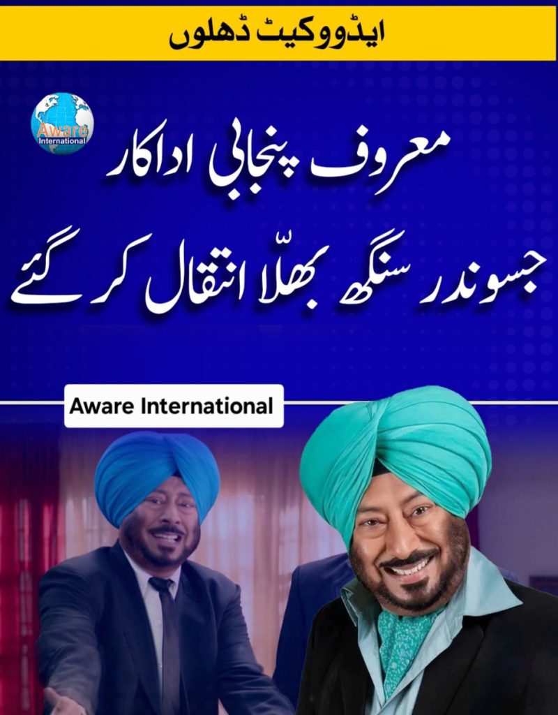 بھارتی پنجابی فلموں کے مقبول ترین کامیڈین اور اداکار جسوندر سنگھ بھلا 65 برس کی عمر میں انتقال کر گئے۔بھارتی میڈیا رپورٹس کے مطابق مزاحیہ اداکار کے اہلِ خانہ نے ان کی موت کی تصدیق کرتے ہوئے بتایا کہ انہیں برین اسٹروک کے بعد موہالی کے اسپتال میں داخل کیا گیا تھا، جہاں وہ جمعے کی صبح چل بسے۔میڈیا رپورٹس کے مطابق جسوندر سنگھ بھلا کی آخری رسومات 23 اگست بروز ہفتہ دوپہر 12 بجے موہالی میں ادا کی جائیں گی، جس میں پنجابی فلم انڈسٹری سے وابستہ شخصیات کی شرکت متوقع ہے۔ان کے انتقال کی خبر نے فلم انڈسٹری کو گہرے صدمے میں ڈال دیا ہے۔ ان کے انتقال سے پنجابی فلم انڈسٹری ایک بڑے فنکار سے محروم ہو گئی ہے جنہوں نے اپنے منفرد انداز سے کامیڈی کو ایک نئی پہچان دی۔ جسوندر سنگھ بھلا کی موت پر بھارتی سیاسی رہنماؤں اور فلم انڈسٹری سے وابستہ شخصیات نے دُکھ کا اظہار کرتے ہوئے اُن کے اہلخانہ سے تعزیت کی ہے۔واضح رہے لپ جسوندر سنگھ بھلا نے اپنے کیریئر کا آغاز 1988 میں کامیڈی البم ’چھنکاتا 88‘ سے کیا۔ انہوں نے درجنوں سپرہٹ پنجابی فلموں میں یادگار کردار ادا کیے۔ ان کی یادگار فلموں میں کیری آن جٹا، بھاجی ان پرابلم، منجھے بسسراں دے، سجن سنگھ رنگروٹ اور جٹ اینڈ جولیٹ جیسی فلمیں شامل ہیں