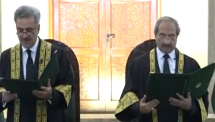 جسٹس علی باقر نجفی نے سپریم کورٹ کے جج کی حیثیت سے حلف اٹھا لیا۔چیف جسٹس پاکستان جسٹس یحییٰ آفریدی نے جسٹس علی باقر نجفی سے حلف لیا۔واضح رہے کہ گزشتہ روز وزارتِ قانون نے جسٹس علی باقر نجفی کی سپریم کورٹ میں تقرری کا نوٹیفکیشن جاری کیا تھا۔صدرِ مملکت کی منظوری کے بعد جسٹس علی باقر نجفی کی تقرری کا نوٹی فکیشن جاری کیا گیا تھا۔یاد رہے کہ جوڈیشل کمیشن نے 11 اپریل کو جسٹس علی باقر نجفی کی سپریم کورٹ میں تقرری کی منظوری دی تھی