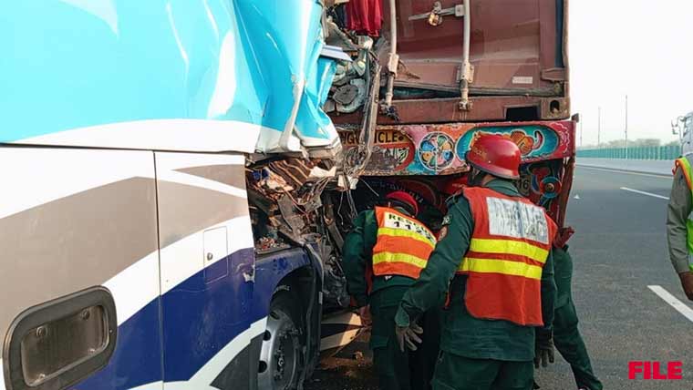 موٹر وے پر مسافر بس اور ٹرک میں تصادم، ڈرائیور، ہوسٹس سمیت 3 افراد جاں بحق