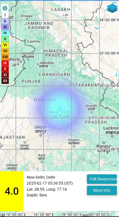 بھارتی دارالحکومت نئی دہلی میں صبح سویرے زلزلے کے جھٹکے محسوس کیے گئے ہیں۔بھارتی میڈیا کے مطابق نئی دہلی اور مضافات میں 4.0 کی شدت کے زلزلے کے جھٹکے محسوس کیے گئے۔زلزلہ پیما مرکز کا بتانا ہے کہ زلزلے کی زیر زمین گہرائی 5 کلومیٹر ریکارڈ کی گئی۔رپورٹ کے مطابق زلزلے کے بعد لوگ خوف کی وجہ سے اپنے گھروں سے باہر نکل آئے تاہم ابھی تک کسی جانی نقصان کی اطلاع نہیں ہے۔بھارتی میڈیا کا کہنا ہے کہ زلزلے کے جھٹکے مقامی وقت کے مطابق 5 بج کر 35 منٹ پر محسوس کیے گئے تھے