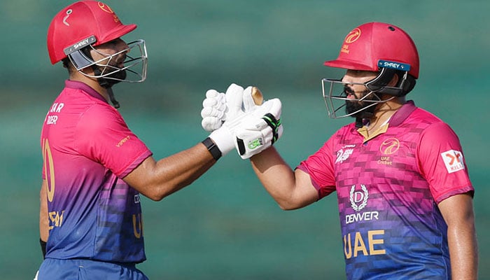 ٹی20 ایشیا کپ کے ساتویں میچ میں متحدہ عرب امارات (یو اے ای) نے عمان کو 42 رنز سے ہرادیا۔ 173 رنز کے ہدف کے تعاقب میں حریف ٹیم 130 رنز بناسکی۔ابوظبی میں میں کھیلے جارہے گروپ اے کے میچ میں عمان کے کپتان جتندر سنگھ نے ٹاس جیت کر پہلے فیلڈنگ کا فیصلہ کیا۔یو اے ای کی ٹیم نے مقررہ 20 اوورز میں کپتان محمد وسیم اور علی شان شرفو کی شاندار نصف سنچریوں کی بدولت 5 وکٹ پر 172 رنز بنائے ہیں۔یو اے ای کی اوپننگ جوڑی نے پہلی وکٹ پر 88 رنز کی شراکت قائم کی علی شان شرفو 51 بناکر کر پویلین لوٹ گئے، اُن کی اننگز 7 چوکوں اور 1 چھکے سے مزین تھی۔یو اے ای کے کپتان محمد وسیم 54 گیندوں پر 69 رنز بناکر رن آؤٹ ہوئے، انہوں نے اس دوران 6 چوکے اور 3 چھکے لگائے۔محمد زوہیب نے 21 اور ہرشیت کوشک نے 19 رنز کی باری کھیلی جبکہ عمان کے جیتن نے 2 کھلاڑیوں کو آؤٹ کیا۔ جواب میں عمان کی ٹیم 19ویں اوور میں 130 رنز بناکر آؤٹ ہوگئی، آریان بشت نے 24، جتیندر سنگھ اور ونائیک شُکلا نے20،20 رنز اسکور کیے۔یو اے ای کی طرف سے جنید صدیقی نے 4، محمد جواد اللّٰہ اور حیدر علی نے 2، 2 کھلاڑیوں کو آؤٹ کیا تھا۔گروپ اے میں پاکستان، بھارت، یو اے ای اور عمان نے 2، 2 میچز کھیل لیے ہیں، عمان نے اپنا میچ بھارت سے جبکہ یو اے ای نے اپنا آخری مقابلہ پاکستان سے کھیلنا ہے