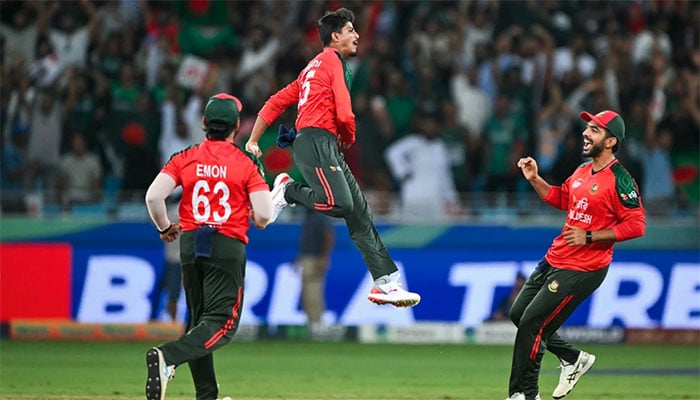 ہلی وکٹ صرف ایک رن پر گرگئی، پرویز حسین ایمون صفر پر آؤٹ بنگلا یش کی دوسری وکٹ 23 رنز پر گری، توحید ہریدوئے 5 رنز بناکر پویلین لوٹ گئے، تیسرے آؤٹ ہونے والا بیٹر سیف حسن تھے جو 18رنز بناکر آؤٹ ہوگئے، اس وقت بنگلادیش کا اسکور 26 رنز تھا۔جب بنگلادیش کا اسکور 44 ہوا تو مہدی حسن نے بھی پویلین کی راہ لی، انہوں نے 11 رنز بنائے۔ 63 رنز پر بنگلادیش کی پانچویں وکٹ گری، نور الحسن 16 رنز بناکر آؤٹ ہوگئے۔ذاکر علی 5 رنز بناکر آؤٹ ہوئے، اس وقت ٹیم کا مجموعی اسکور 73 رنز تھا۔ شمیم حسین عمدہ اننگز کھیل کر 30 رنز بناکر آؤٹ ہوئے۔ یوں بنگلادیش کی ٹیم مقررہ 20 اوورز میں 9 وکٹوں پر 124 رنز بناسکی۔شاہین آفریدی اور حارث رؤف نے 3، 3 کھلاڑیوں کو آؤٹ کیا۔ صائم ایوب نے 2 جبکہ محمد نواز نے ایک وکٹ حاصل کی۔اس سے قبل دبئی میں کھیلے جانیوالے ایونٹ کے اہم ترین میچ میں بنگلادیش نے پاکستان کے خلاف ٹاس جیت کر بولنگ کا فیصلہ کیا، جو درست ثابت ہوا۔پہلے ہی اوور میں پاکستان کی پہلی وکٹ 4 رنز پر گری، صاحبزادہ فرحان 4 رنز بنا کر کیچ آؤٹ ہوئے، جس کے فوراً بعد ہی صائم ایوب بھی صفر پر کیچ دے بیٹھےپاکستان کی تیسری وکٹ 29رنز پر گری، جب اونچا شاٹ کھیلنے کی کوشش میں فخر زمان 13رنز بنا کر باؤنڈری پر کیچ آؤٹ ہوگئے۔حسین طلعت صرف 7 رنز پر اپنی وکٹ رشاد حسین کو دے بیٹھے، پانچویں وکٹ 49 رنز پر گری کپتان سلمان آغا 19 رنز بناکر آؤٹ ہوگئے۔شاہین شاہ آفریدی نے 13ویں اوور میں اننگز کا پہلا چھکا لگایا، مگر اگلے اوور میں تسکین کی گیند پر کیچ آؤٹ ہوئے۔آل راؤنڈر شاہین شاہ آفریدی تیز کھیلنے کی کوشش میں 19 رنز بناکر کیچ آؤٹ ہوئے، اس وقت پاکستان کا اسکور 71 رنز تھا۔ ساتویں وکٹ 109رنز پر گری، محمد حارث 31 رنز بناکر آؤٹ ہوگئے۔مجموعی اسکور میں صرف 11 رنز کے اضافے پر محمد نواز 25 رنز بناکر پویلین لوٹ گئے۔ یوں پاکستان کی ٹیم مقررہ 20 اوور میں 8 وکٹوں کے نقصان پر 135 رنز بناسکیبنگلادیش کی جانب سے تسکین احمد 3 وکٹوں کے ساتھ سب سے کامیاب بولر رہے، مہدی حسن اور رشاد حسین نے 2، 2 وکٹیں حاصل کیں جبکہ مستفض الرحمٰن نے ایک کھلاڑی کو آؤٹ کیا۔دبئی میں ہونے والے ’’ڈو اور ڈائی‘‘ میچ میں جو جیتے گا وہ فائنل میں بھارت کا مقابلہ کرے گا اور جو ہارے گا وہ گھر لوٹ جائے گا۔قومی ٹیم کے کپتان سلمان علی آغا کا کہنا تھا کہ پاکستان ٹیم میں کوئی تبدیلی نہیں کی گئی ہے، اگر ٹاس جیت لیتے تو بیٹنگ کرتے۔بنگلا دیش کی ٹیم میں تین تبدیلیاں کی گئی ہیں، سیف الدین، نسیم اور تنزید ڈراپ کردیے گئے ان کی جگہ مہدی حسن، تسکین احمد اور نور کی واپسی ہوئی ہے۔دونوں ٹیموں کے لیے فائنل تک رسائی کےلیے میچ جیتنا لازم ہے، دبئی کی پچ پہلے بیٹنگ کرنے والی سائیڈ کے لیے قدرے مشکل قرار دی جا رہی ہے