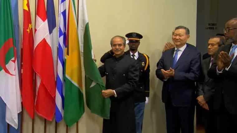پاکستان نے اقوام متحدہ سلامتی کونسل کے غیر مستقل رکن کے طور پر ذمہ داریاں سنبھال لیں۔اقوام متحدہ میں سلامتی کونسل کے غیر مستقل ارکان کی ذمہ داریاں سنبھالنے کی تقریب ہوئی، پاکستان کے ایڈیشنل مستقل مندوب عاصم افتخار نے سلامتی کونسل میں پاکستان کا پرچم لگا دیا، پاکستان دو سال تک اپنی ذمے داریاں نبھائے گا، دیگر غیر مستقل ارکان ڈنمارک، یونان، پاناما اور صومالیہ کے پرچم بھی لگائے گئے۔منیر اکرم نے کہا کہ سلامتی کونسل میں دنیا کو درپیش چیلنجز سے نمٹنے کیلئے فعال کردار ادا کریں گے، پاکستان میں مجموعی طور سکیورٹی کی صورتحال بہت بہتر ہے، پاکستان ایک مضبوط ملک ہے، ہماری قوم متحد ہے، سکیورٹی کونسل میں افغانستان کے حوالے بات ہوتی رہتی ہے۔سلامتی کونسل میں پاکستان کے ایڈیشنل مستقل مندوب عاصم افتخار نے کہا کہ افغانستان کے حوالے سے ہمارا مؤقف بالکل واضح ہے، ہم پر امن اور مستحکم افغانستان چاہتے ہیں۔