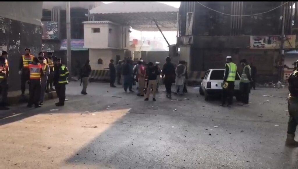 پشاور میں دہشت گردوں نے فیڈرل کانسٹیبلری ہیڈکوارٹرز پر حملہ کیا، سیکیورٹی فورسز کی فائرنگ میں 3 دہشت گرد ہلاک ہوگئے۔سی سی پی او پشاور ڈاکٹر میاں سعید نے حملے کی تصدیق کرتے ہوئے کہا کہ 3 خودکش حملہ آوروں نے فیڈرل کانسٹیبلری پر حملہ کیا، ایک خودکش حملہ آور نے خود کو مرکزی گیٹ پر اڑایا۔ڈاکٹر میاں سعید نے کہا کہ دو خودکش حملہ آور فیڈرل کانسٹیبلری ہیڈکوارٹر کے اندر داخل ہوئے، فیڈرل کانسٹیبلری کے اہلکاروں نے دونوں حملہ آوروں پر فائرنگ کی، تینوں خودکش حملہ آور مارے گئے ہیں۔سی سی پی او پشاور نے مزید کہا کہ دہشت گردوں کے حملے کے باعث سنہری مسجد روڈ کو ٹریفک کے لیے بند کردیا گیا ہے۔حملے کے بعد ریسکیو ٹیمیں اور پولیس کی بھاری موقع پر پہنچ گئی جبکہ ہیڈکوارٹر میں کلیئرنگ آپریشن جاری ہے۔حملے سے متعلق علاقہ مکینوں کا کہنا تھا کہ ایف سی ہیڈ کوارٹر کی جانب سے فائرنگ کی آوازیں سنائی دیں۔فیڈرل کانسٹیبلری ہیڈکوارٹر میں 2 خودکش دھماکے ہوئے: آئی جیآئی جی خیبرپختونخوا پولیس ذوالفقار حمید نے کہا ہے کہ فیڈرل کانسٹیبلری ہیڈکوارٹر میں 2 خودکش دھماکے ہوئے ہیں، آئی جی ذوالفقار حمید نے کہا کہ ایک دھماکا مین گیٹ پر اور دوسرا موٹر سائیکل اسٹینڈ پر ہوا، فائرنگ کے تبادلے میں 2 حملہ آور مارے جاچکے ہیں