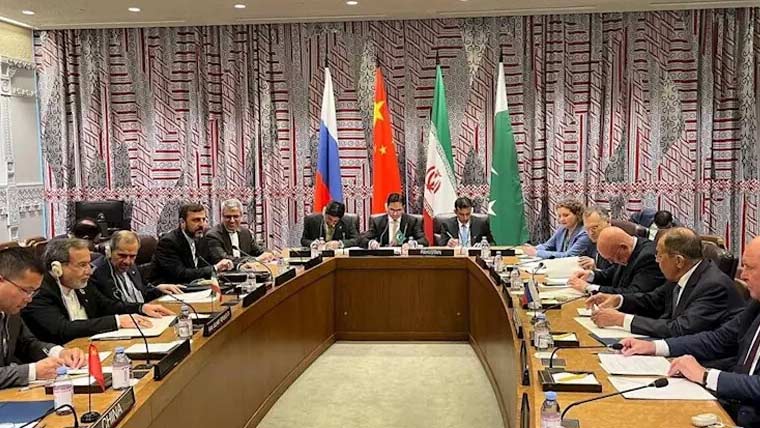 ترجمان دفتر خارجہ کے مطابق نیویارک میں چین، ایران، پاکستان اور روس کے وزرائے خارجہ کا چوتھا چار فریقی اجلاس ہوا جس میں افغانستان میں کالعدم داعش، القاعدہ، کالعدم تحریک طالبان پاکستان، کالعدم بی ایل اے، کالعدم جیش العدل پر تشویش کا اظہار اور کارروائی کا مطالبہ کیا گیا۔ترجمان دفتر خارجہ کے مطابق اجلاس افغانستان کی صورتحال پر 80 ویں جنرل اسمبلی کے موقع پر منعقد ہوا، چاروں ممالک کا افغانستان کو آزاد، متحد اور پُرامن ریاست بنانے کے عزم کا اعادہ کیا گیا، افغانستان کی معیشت بہتر بنانے اور عوام کی حالت زار کم کرنے پر اتفاق ہوا۔اجلاس میں فریقین نے افغانستان کے ساتھ تجارتی تعاون اور علاقائی روابط بڑھانے پر زور دیا، 1988 کے پابندیوں کے نظام میں زمینی حقائق کے مطابق ایڈجسٹمنٹ کی ضرورت پر زور دیا گیا، طالبان رہنماؤں کے سفری استثنیٰ پر سیاسی مقاصد اور دوہرے معیار سے گریز کی اپیل کی گئی۔ترجمان دفتر خارجہ کے مطابق اجلاس میں افغانستان کے لیے ہنگامی انسانی امداد بڑھانے کا مطالبہ کیا گیا، انسانی امداد کو سیاسی معاملات سے نہ جوڑنے پر زور دیا گیا۔اجلاس میں افغان حکام پر دہشت گرد گروہوں کے خلاف مؤثر اقدامات کرنے پر زور دیا گیا، دہشت گردوں کی فنڈنگ، بھرتی، اسلحے تک رسائی ختم کرنے کا مطالبہ کیا گیا۔ترجمان دفتر خارجہ کے مطابق افغانستان میں دہشت گردی کے تربیتی مراکز اور انفراسٹرکچر ختم کرنے پر زور دیا گیا، انسداد دہشت گردی میں دوطرفہ اور کثیرالجہتی تعاون بڑھانے پر اتفاق ہوا۔اجلاس میں افغان حکام کی افیون کی کاشت کم کرنے کی کوششوں کو سراہا، منشیات کے انسداد کے لیے جامع حکمت عملی اپنانے پر زور دیا گیا، افغان پناہ گزینوں کی باعزت واپسی کے لیے اقدامات پر زور دیا گیا۔ترجمان دفتر خارجہ کے مطابق ایران اور پاکستان کی جانب سے لاکھوں افغان پناہ گزینوں کی میزبانی کو سراہا گیا، عالمی برادری سے ایران و پاکستان کو مزید مدد دینے کی اپیل کی، افغانستان میں جامع اور وسیع البنیاد حکومت بنانے پر زور دیا گیا۔اجلاس میں خواتین اور بچیوں کو تعلیم، روزگار اور عوامی زندگی میں شمولیت دینے، افغان عوام کے بنیادی حقوق اور سہولتوں کی فراہمی پر زور دیا گیا، نیٹو ممالک کو افغانستان کی موجودہ صورتحال کا ذمہ دار قرار دیا گیا۔ترجمان دفتر خارجہ کے مطابق افغانستان کے منجمد اثاثے افغان عوام کو واپس کرنے کا مطالبہ کیا گیا، افغانستان اور اردگرد فوجی اڈے قائم کرنے کی مخالفت اور افغان مسئلے کے سیاسی حل کے لیے عالمی اور علاقائی کوششوں کی حمایت کی گئی۔اجلاس میں ماسکو فارمیٹ، شنگھائی تعاون تنظیم اور ہمسایہ ممالک کے اجلاس کو اہم قرار دیا گیا، دوشنبے میں چاروں ممالک کے نمائندوں کے حالیہ اجلاس کا خیرمقدم کیا گیا۔
