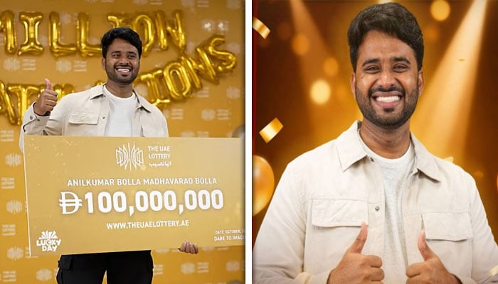 متحدہ عرب امارات کی تاریخ کی سب سے بڑی لاٹری جیتنے والے خوش قسمت شخص کی شناخت ظاہر کر دی گئی۔ ابوظبی میں مقیم 29 سالہ انیل کمار بولا نے 100 ملین درہم کا انعام جیت کر تاریخ رقم کر دی۔انیل کمار بولا کا تعلق بھارت سے ہے اور وہ گزشتہ چند سالوں سے ابوظبی میں مقیم ہیں، انہوں نے ایک نجی لاٹری اسکیم میں شرکت کی تھی جس کے نتائج نے ان کی زندگی بدل کر رکھ دی۔انیل کمار نے اپنی جیت پر خوشی کا اظہار کرتے ہوئے کہا کہ یہ کسی خواب سے کم نہیں، میں بار بار خود کو یاد دلاتا ہوں کہ میں واقعی 100 ملین درہم جیت چکا ہوں، ابھی تک یقین نہیں آ رہا کہ یہ سب سچ ہے۔انہوں نے مزید کہا کہ میں کچھ عرصہ سیون اسٹار ہوٹل میں قیام کروں گا تاکہ آرام کر سکوں اور جلد ہی اپنے خاندان کو ابوظبی منتقل کر لوں گا