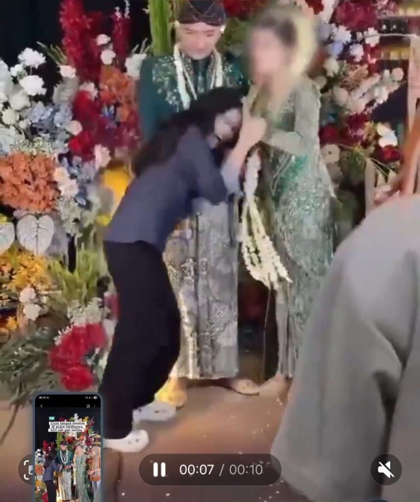 انڈونیشیا میں ایک شادی کی تقریب اس وقت ڈرامے میں بدل گئی جب فوٹو سیشن کے دوران دولہے کی سابقہ گرل فرینڈ اچانک اسٹیج پر آ گئی۔عینی شاہدین کے مطابق، خاتون نے دلہن کی موجودگی میں دولہے کے ہاتھ کو چومنے کی کوشش کی، جس سے محفل میں کھلبلی مچ گئی اور مہمان حیران رہ گئے۔صورتحال اس وقت قابو میں آئی جب دلہن نے فوری، پُراعتماد اور جرات مندانہ ردِعمل دیتے ہوئے مداخلت کی اور واضح کر دیا کہ شادی کے اس مقدس لمحے میں کسی غیر متوقع حرکت کی کوئی گنجائش نہیں۔یہ واقعہ کیمرے کی آنکھ سے اوجھل نہ رہ سکا اور ویڈیو سوشل میڈیا پر تیزی سے وائرل ہو گئی۔کچھ صارفین دلہن کے مضبوط مؤقف کو سراہ رہے ہیں، جبکہ دیگر اسے شادی کے آداب کی سنگین خلاف ورزی قرار دے رہے ہیں۔ ایک خوشی کا لمحہ، ایک غیر متوقع موڑ اختیار کر گیا اور یہ شادی اب سوشل میڈیا کی سب سے زیادہ زیرِ بحث کہانی بن چکی ہے۔