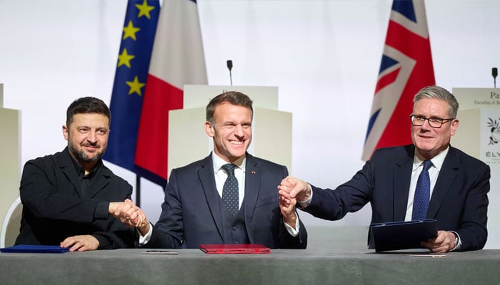 برطانیہ اور فرانس نے اتفاق کیا ہے کہ دونوں ممالک یوکرین میں جنگ بندی کے بعد اپنے فوجی تعینات کریں گے۔غیر ملکی میڈیا کے مطابق پیرس میں ہونے والی ملاقات میں برطانوی وزیراعظم کیئر اسٹارمر اور فرانسیسی صدر میکرون نے یوکرین میں جنگ بندی کے بعد اپنے فوجی دستے تعینات کرنے کا اعلان کیا ہے۔دونوں ملکوں کے سربراہان کے علاوہ یوکرین کے صدر زیلنسکی نے یوکرین میں فرانس اور برطانوی فوج کی تعیناتی اور فوجی اڈے بنانے کے حوالے سے سہ فریقی معاہدے پر دستخط کیے ہیں۔یہ معاہدہ ایسے وقت میں کیا گیا ہے جب پیرس میں یورپی اتحادی اور امریکی نمائندہ خصوصی اور امریکی صدر کے داماد جیرڈ کشنر بھی موجود تھے۔