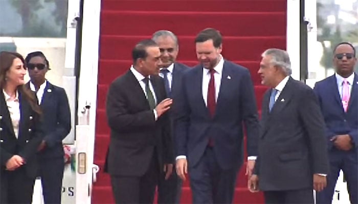 ایران سے جنگ بندی مذاکرات کے لیے امریکا کے نائب صدر جے ڈی وینس اسلام آباد پہنچ گئے۔اسلام آباد کے نور خان ایئر بیس پر امریکی نائب صدر جے ڈی وینس کا استقبال آرمی چیف فیلڈ مارشل عاصم منیر، نائب وزیرِ اعظم و وزیرِ خارجہ اسحاق ڈار، وزیرِ داخلہ محسن نقوی اور دیگر حکام نے کیا۔پاکستان پہنچنے کے لیے امریکی نائب صدر کے طیارے نے مشرقِ وسطیٰ کے ممالک کی فضا کو نظر انداز کر کے طویل راستہ اختیار کیا، میری لینڈ سے روانگی کے بعد طیارے نے پیرس میں ڈھائی گھنٹے اسٹاپ اوور کیا۔پرواز پاکستانی وقت صبح 3 بجے پیرس سے اسلام آباد کے لیے روانہ ہوئی، امریکی نائب صدر کے طیارے نے طویل افغان کی فضائی حدود استعمال نہیں کی۔طیارہ جارجیا، آذربائیجان، ترکمانستان، تاجکستان کے راستے پاکستان پہنچا، جو چترال کے قریب سے پاکستانی فضائی حدود میں داخل ہوا۔نائب امریکی صدر کے خصوصی طیارے نے 10 بج کر 33 منٹ پر نور خان ایئر بیس پر لینڈ کیا۔پاکستان میں ایران امریکا مذاکرات کے لیے آنے والے امریکی وفد میں جے ڈی وینس کے علاوہ اسٹیو وٹکوف اور جیرڈ کشنر بھی ہوں گے۔پاکستان روانگی سے قبل امریکی نائب صدر جے ڈی وینس نے میڈیا سے گفتگو کرتے ہوئے کہا کہ یقین ہے کہ مذاکرات مثبت ہوں گے۔انہوں نے کہا کہ ایران نیک نیتی دکھائے تو امریکا بھی تیار ہے، ایران نے کھیلنے کی کوشش کی تو اسے قبول نہیں کریں گے۔واضح رہے کہ ایران کا اعلیٰ سطحی وفد امریکا سے مذاکرات میں شرکت کے لیے اسلام آباد پہنچ گیا ہے۔ترجمان دفترِ خارجہ کے مطابق ایرانی وفد کی قیادت اسپیکر ایرانی پارلیمنٹ محمد باقر قالیباف کر رہے ہیں، جبکہ ایرانی وزیرِ خارجہ عباس عراقچی بھی وفد کے ہمراہ اسلام آباد پہنچے ہیں