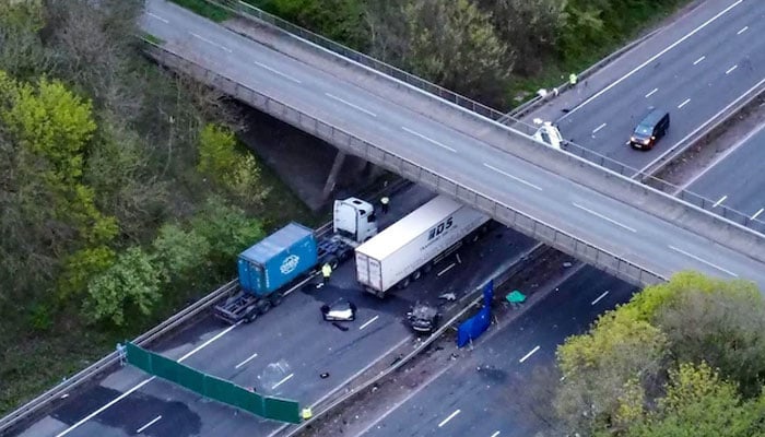 لیسٹرشائر کی ایم 1 موٹروے پر کار کو حادثہ پیش آیا ہے جس میں سوار دو افراد ہلاک ہوگئے۔ تفصیلات کے مطابق ایک تیز رفتار کار اچانک ایک پل سے نیچے جا گری اور نیچے سے گزرنے والی منی بس سے جاٹکرائی۔یہ تصادم اس قدر شدید تھا کہ کار میں سوار دونوں نوجوان موقع پر ہی دم توڑ گئے جبکہ منی بس میں موجود مسافر خوف و ہراس کا شکار ہو گئے۔حادثے کے بعد امدادی ٹیمیں فوری طور پر جائے وقوعہ پہنچ گئیں۔ پولیس نے واقعے کی تحقیقات شروع کر دیں اور عینی شاہدین سے اہم معلومات فراہم کرنے کی اپیل کردی۔ زخمیوں کو فوری طور پر اسپتال منتقل کر دیا گیا جہاں ان کی حالت خطرے سے باہر بتائی جا رہی ہے