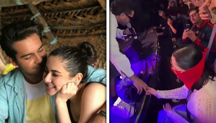 عالمی شہرت یافتہ پاکستانی معروف شوبز شخصیات عاصم اظہر اور ہانیہ عامر ایک بار پھر خبروں کی زینت بن گئے ہیں۔گزشتہ چند مہینوں سے دنوں فنکاروں کے درمیان تعلقات بہتر ہو رہے ہیں، یہ دونوں مختلف تقریبات میں ایک ساتھ شرکت کرتی دکھائی دے رہے ہیں، جبکہ سوشل میڈیا پر ان کی ممکنہ شادی سے متعلق چہ مگوئیاں بھی جاری ہیں۔اس وقت دونوں امریکا میں موجود ہیں، جہاں عاصم اظہر اپنے کنسرٹس میں پرفارم کر رہے ہیں جبکہ ہانیہ عامر بھی ان تقریبات میں شریک ہو رہی ہیں۔حال ہی میں نیویارک میں ہونے والے ایک کنسرٹ کے دوران ایک لمحہ ایسا بھی آیا جب عاصم اظہر نے اسٹیج پر پرفارمنس کے دوران مختصر طور پر ہانیہ عامر کا ہاتھ تھاما۔اس منظر کو مداحوں نے فوری طور پر کیمرے میں محفوظ کر لیا، جس کے بعد ویڈیوز اور تصاویر سوشل میڈیا پر تیزی سے وائرل ہو گئیںدونوں فنکار سفید لباس میں ہم آہنگ انداز میں نظر آئے، جبکہ ہانیہ عامر نے سرخ ماسک کے ذریعے اپنا چہرہ ڈھانپ رکھا تھا۔سوشل میڈیا صارفین کی جانب سے اس پر ملا جلا ردِعمل سامنے آ رہا ہے، جہاں کئی مداح اس جوڑی کو پسند کرتے ہوئے ان کی شادی کے لیے نیک خواہشات کا اظہار کر رہے ہیں، وہیں کچھ صارفین نے اس لمحے کو غیر مناسب قرار دیا ہے۔دوسری جانب کچھ مداحوں کا خیال ہے کہ ہانیہ عامر عاصم اظہر کے امریکا میں ہونے والے مزید کنسرٹس میں بھی شرکت کریں گی۔