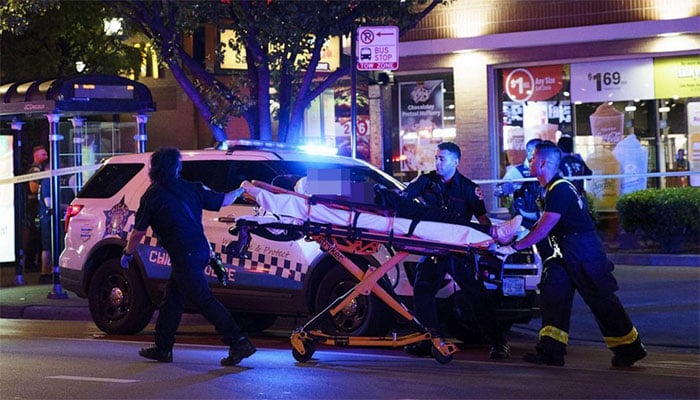 امریکا کے شہر شکاگو میں فائرنگ سے 4 افراد ہلاک 14 زخمی ہوگئے، زخمیوں میں کم از کم 3 افراد کی حالت نازک ہے۔شکاگو کے شمالی علاقے میں گزشتہ رات فائرنگ کا واقعہ پیش آیا، جس میں 18 افراد کو گولیاں ماری گئیں۔ واقعے میں ہلاک افراد میں دو مرد اور دو خواتین شامل ہیں۔پولیس کے مطابق فائرنگ کا واقعہ بدھ کی رات شکاگو کے ریور نارتھ علاقے میں نائٹ کلب کے باہر پیش آیا جب ایک کار میں سوار افراد نے سڑک کنارے فٹ پاتھ پر چلنے والوں پر فائرنگ کی۔ ملزمان فرار ہونے میں کامیاب ہوگئے۔میڈیا رپورٹس کے مطابق واقعہ مقامی ریپ اسٹار میلو بکز کے نئے البم کی تعارفی تقریب کے بعد پیش آیا۔ میلو بکز کا بوائے فرینڈ بھی فائرنگ کا نشانہ بننے والوں میں شامل ہے۔ پولیس کا کہنا ہے واقعے میں کوئی گرفتاری نہیں کی گئی، مزید تفتیش جاری ہے