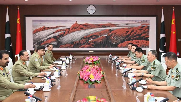 ۔دونوں جانب سے دوطرفہ تعلقات کی گہرائی پر اطمینان کا اظہار کیا گیا اور خودمختار مساوات، کثیرالجہتی تعاون اور طویل المدتی علاقائی استحکام کے لیے مشترکہ عزم کا اعادہ کیا گیا۔چینی قیادت نے پاکستان کی مسلح افواج کو خطے میں امن کی ضامن اور استقامت کی علامت قرار دیتے ہوئے ان کے کردار کو سراہا۔آئی ایس پی آر کے مطابق فیلڈ مارشل سید عاصم منیر نے چین کے سینٹرل ملٹری کمیشن کے وائس چیئرمین جنرل ژانگ یوژیا، پیپلز لبریشن آرمی کے پولیٹیکل کمشنر جنرل چن ہوئی اور چیف آف سٹاف لیفٹیننٹ جنرل کائی زائی جن سے ملاقاتیں کیں۔پیپلز لبریشن آرمی ہیڈکوارٹرز آمد پر جنرل عاصم منیر کو گارڈ آف آنر پیش کیا گیا، جو دونوں ممالک کی افواج کے درمیان دیرینہ بھائی چارے اور عسکری ہم آہنگی کی علامت ہے۔ پاک فوج کے شعبہ تعلقات عامہ کی جانب سے بتایا گیا کہ ان ملاقاتوں میں دفاع اور سیکیورٹی تعاون پر جامع تبادلہ خیال کیا گیا، جن میں انسدادِ دہشت گردی میں شراکت، مشترکہ تربیت، دفاعی شعبے کی جدید کاری، اور ادارہ جاتی روابط کو فروغ دینے جیسے اہم امور شامل تھے۔دونوں جانب سے آپریشنل ہم آہنگی اور تزویراتی رابطوں کو بہتر بنانے پر زور دیا گیا تاکہ ہائبرڈ اور سرحد پار خطرات کا مؤثر طور پر مقابلہ کیا جا سکے، چینی عسکری قیادت نے دوطرفہ دفاعی شراکت داری کی مضبوطی پر مکمل اعتماد کا اظہار کیا اور علاقائی امن کے فروغ میں پاکستان کے کلیدی کردار کو تسلیم کیا۔آئی ایس پی آر کے مطابق فیلڈ مارشل عاصم منیر نے چین کی مسلسل حمایت پر شکریہ ادا کیا اور تمام شعبوں میں پاک چین عسکری تعاون کو مزید وسعت دینے کے پاکستان کے عزم کا اعادہ کیا۔