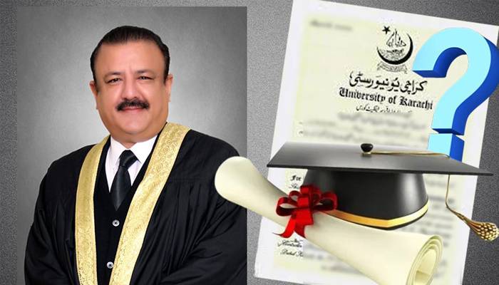 جسٹس طارق محمود جہانگیری کی ڈگری تنازع کیس میں ہائر ایجوکیشن کمیشن کی رپورٹ اسلام آباد ہائیکورٹ میں جمع کروا دی گئی، کراچی یونیورسٹی کا جواب بھی رپورٹ کا حصہ ہے۔ایچ ای سی کی رپورٹ میں بتایا گیا ہے کہ ہائر ایجوکیشن کمیشن کا یونیورسٹی کے انتظامی معاملات میں کوئی کردار نہیں، موجودہ رِٹ پٹیشن مکمل طور پر یونیورسٹی کا داخلی معاملہ ہے اور یونیورسٹی کی اپنی اتھارٹیز ڈگری جاری کرنے کی ذمہ دار ہیں، اس حوالے سے ایچ ای کا کوئی کردار نہیں۔رپورٹ میں بتایا گیا کہ جسٹس طارق جہانگیری کی ڈگری کبھی ہائر ایجوکیشن کمیشن کے سامنے تصدیق کے لیے پیش ہی نہیں کی گئی اور ڈگری کی تصدیق سے متعلق نہ ہی کوئی درخواست زیر التوا ہے۔ ہائر ایجوکیشن کمیشن نہ تو ڈگری جاری کرتا ہے اور نہ ہی انہیں منظور کرتا ہے۔ایچ ای سی کسی ایسی ڈگری کی تصدیق نہیں کر سکتا جو متعلقہ یونیورسٹی یا اعلیٰ تعلیمی ادارے کے تحت تسلیم شدہ نہ ہو، ہائر ایجوکیشن کمیشن کا اس معاملے کے حقائق یا حالات سے کوئی تعلق نہیں بنتا۔کراچی یونیورسٹی کے جواب میں جسٹس جہانگیری کی ڈگری منسوخ کرنے کی وجوہات کا بھی ذکر موجود ہے۔ جامعہ کراچی نے جواب میں موقف اپنایا ہے کہ سال 1989 میں طارق محمود پر اَن فیئر مینز کمیٹی نے 3 سال کی پابندی لگائی، کمیٹی نے نقل کرنے اور ایگزامنر کو دھمکیاں دینے کا الزام ثابت ہونے پر 3 سالہ پابندی لگائی تھی۔یونیورسٹی کے 1989 کے فیصلے کے تحت طارق محمود 1992 میں دوبارہ امتحان دینے کے لیے اہل تھے، پابندی کے خلاف طالبعلم طارق محمود نے ڈگری حاصل کرنے کے لیے 1990 کا جعلی انرولمنٹ فارم استعمال کیا، جس پر طالبعلم طارق محمود نے گورنمنٹ اسلامیہ کالج کی جعلی مہر استعمال کی۔کراچی یونیورسٹی نے جواب میں بتایا کہ طارق محمود کی ڈگری پر انرولمنٹ نمبر 5968/87 امتیاز احمد نامی طالبعلم کو الاٹ ہوا ہے، طارق محمود نے 1990 میں ایل ایل پارٹ 2 کے لیے بھی 7184/87 انرولمنٹ نمبر جعلسازی سے حاصل کیا۔ نام اور انرولمنٹ نمبر بدل بدل کر مارک شیٹس اور ڈگری حاصل کی گئیں۔جواب میں مزید کہا گیا کہ شہری عرفان مظہر نے 23 مئی 2024 کو طارق محمود کی ڈگری کی تصدیق کی درخواست دی، شہری کی درخواست کے ردعمل میں یونیورسٹی نے دوبارہ دونوں انرولمنٹ نمبروں کی جانچ پڑتال کی۔ کنٹرولر ایگزامنیشن نے دوہرے انرولمنٹ نمبرز کو ناممکن قرار دیتے ہوئے ڈگری اور مارک شیٹس کو غلط قرار دیا۔کراچی یونیورسٹی کے جواب میں بتایا گیا کہ رجسٹرار اسلام آباد ہائیکورٹ نے 5 جولائی 2024 کو بذریعہ ای میل کنٹرولر ایگزامیشن کے لیٹر کی تصدیق مانگی، رجسٹرار ہائیکورٹ کی ای میل کے جواب میں یونیورسٹی نے ڈگری کو غلط قرار دینے کے مراسلے کی تصدیق کی۔ پرنسپل اسلامیہ کالج نے تصدیق کی کہ طارق محمود 1984 سے 1991 تک کبھی کالج میں طالب علم ہی نہیں رہے۔